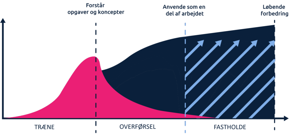 - Train-Transfer-Sustain-modellen bygger videre på denne tanke og inkorporerer Glemselskurven som en del af sit framework.